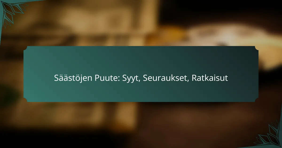 Säästöjen Puute: Syyt, Seuraukset, Ratkaisut